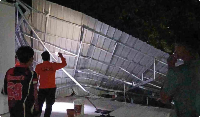 Bangunan yang roboh diketahui merupakan dapur milik Satuan Pelayanan Pemenuhan Gizi (SPPG) yang masih dalam tahap pembangunan. Struktur bangunan belum sepenuhnya kokoh sehingga tidak mampu menahan tekanan angin kencang. Bagian atap yang menggunakan material seng atau galvalum dilaporkan terangkat, yang kemudian berdampak pada kerusakan di sisi belakang bangunan. Area yang terdampak termasuk bagian yang direncanakan sebagai tempat pencucian peralatan makan untuk mendukung operasional program tersebut.