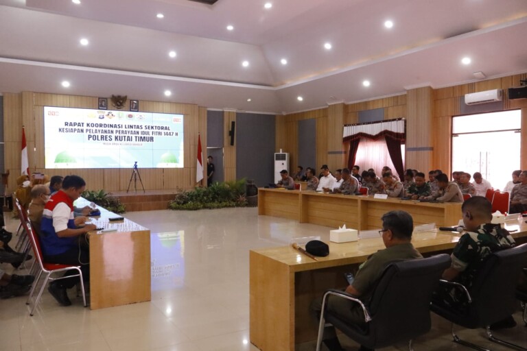 sekitarkaltim.com – Menjelang perayaan Idul Fitri 1447 Hijriah, Polres Kutai Timur menggelar Rapat Koordinasi (Rakor) Lintas Sektoral guna memastikan kesiapan pengamanan serta pelayanan maksimal kepada masyarakat selama momentum Lebaran, Senin (2/3/2026). Forum strategis tersebut menjadi langkah awal dalam menyatukan persepsi dan rencana aksi seluruh pemangku kepentingan agar situasi keamanan dan ketertiban masyarakat tetap terjaga.