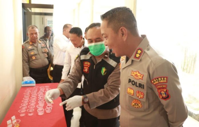 sekitarkaltim.com – Langkah tegas dalam pemberantasan narkoba kembali ditegaskan jajaran Polres Kutai Timur. Di tengah intensitas penindakan terhadap peredaran dan penyalahgunaan narkotika, Kapolres Kutai Timur AKBP Fauzan Arianto bersama seluruh Pejabat Utama (PJU) menjalani tes urine mendadak pada Rabu (25/2/2026) di Mapolres Kutim.